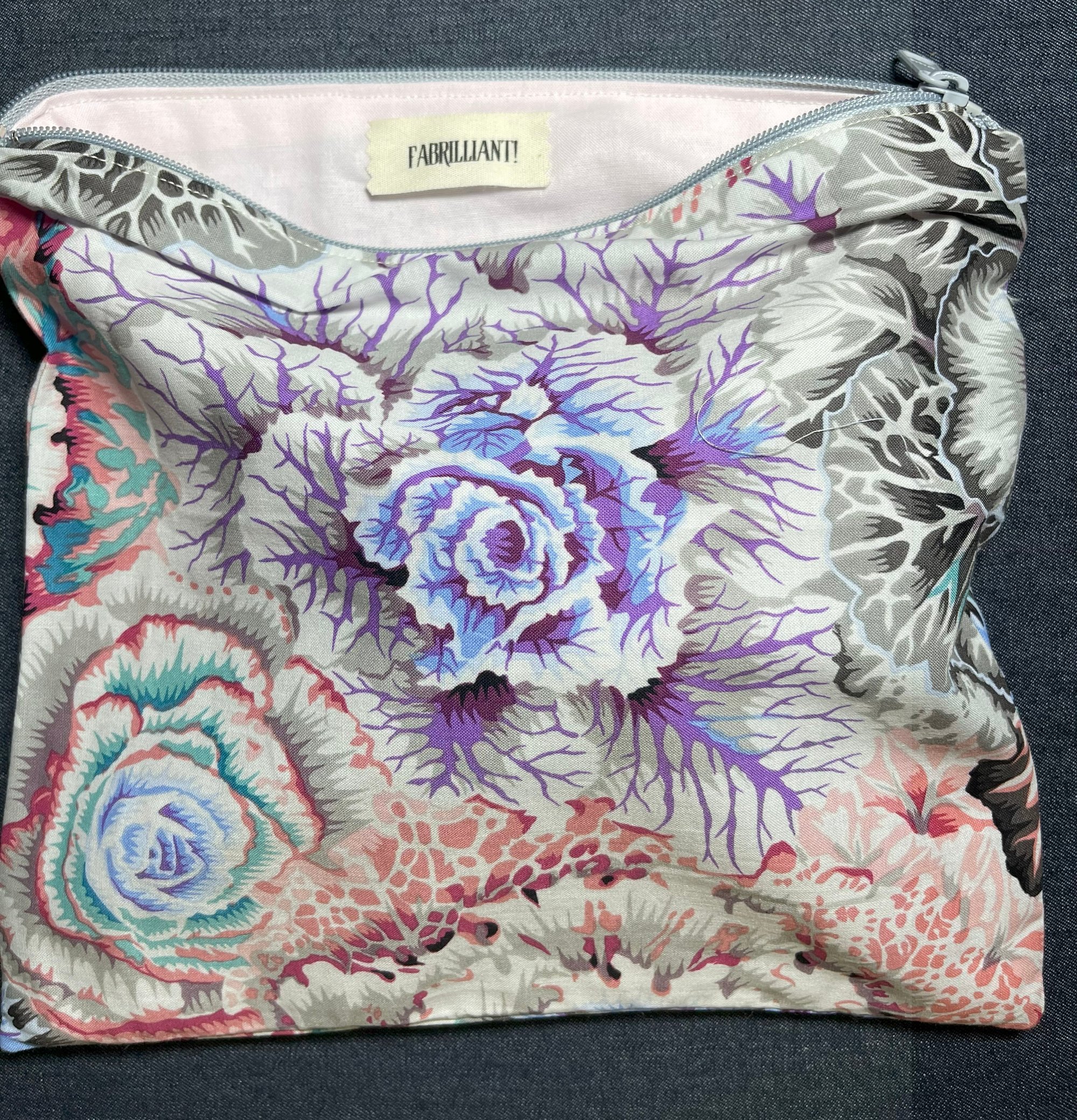 9 1/2 x10 Handmade lined zippered bag in fine cotton , lined in pale pink